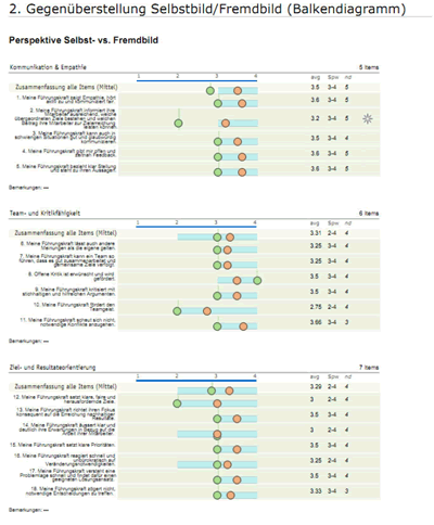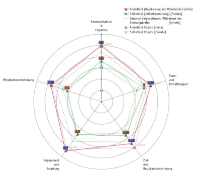 Unsere grosse Erfahrung in hunderten von Führungskräfte-Befragungen fliesst in die Ergebnisdarstellung und -visualisierung mit ein.