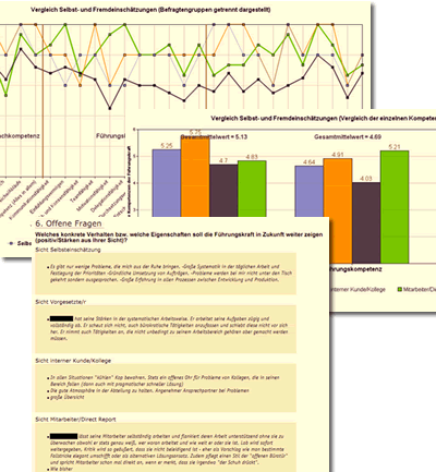 Nutzen Sie unser System mit erweiterten Funktionen (Jahrespauschale 390 Euro) für Ihr 360° Feedback und erzeugen Sie fixfertige PDF-Reports direkt online.