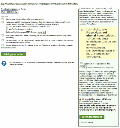 Massen-Download (aus ökologischen Gründen 29 Euro) sämtlicher Papierfragebögen als PDF-Originalansicht (oft mehrere 1'000 Seiten bei z.B. 250 Tn)