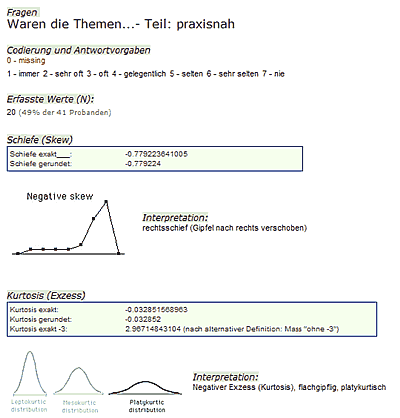 Skew / Exzess der Verteilung der Antworten auf Fragen