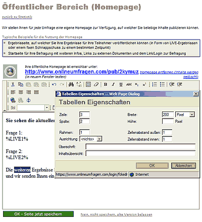 Öffentlicher Bereich für jede Umfrage zur Publikation der Ergebnisse
