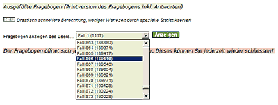 Ausdruck und Anzeige aller Fragebogen im Originalblatt (je nach Anonymisierung)