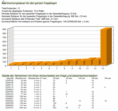 Meta-Daten, z.B. Frageantwortdauer und Befragungsdauer pro Proband für den Gesamtfragebogen