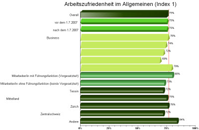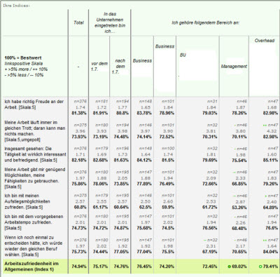 Visualisierung der Indices auch über Subgruppen hinweg (analog Tabellenbände) mit beliebigen Filtern, z.B. nach Regionen, Business Units, Funktion, etc.