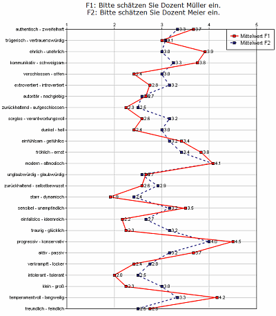 Vollautomatische Erstellung von Vergleichsdiagrammen (mehrere semantische Differenziale in einem Diagramm) bei identischen Antwortvorgaben in mehreren Fragen
