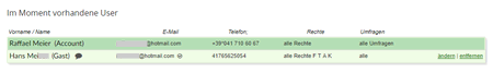Multi-User erhalten Zugriff auf den Admin-Account (resp. Teile davon), mit eingeschränkten Rechten