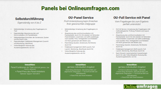 • Wir bieten Panel, Konfiguration, Quoten-Setup, Launch und Monitoring (und natürlich alle Vorteile unseres Onlineumfragen-Tools) aus einer Hand und sind Ihre Single Person of Contact.